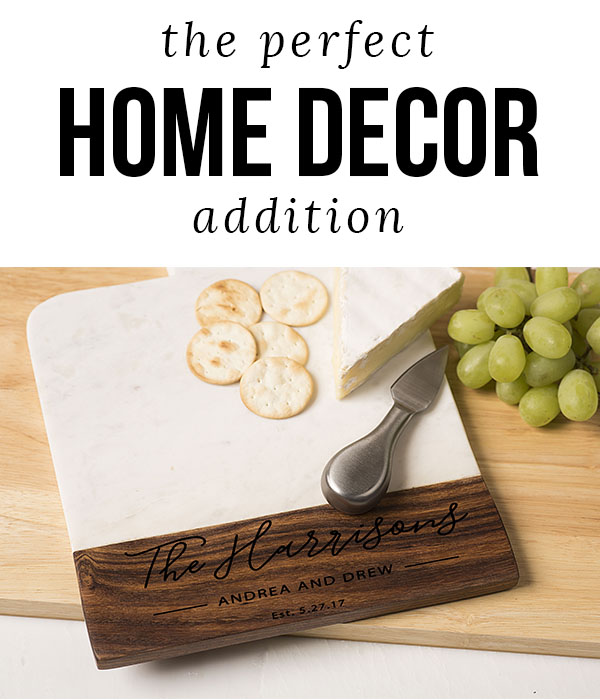 Each personalized cheese board and coaster set is made from 100% natural material, so each board is unique and different. The Perfect Closing Gift’s Marble Wood Cheese board come with a leather strap for your client can hang their board to store.